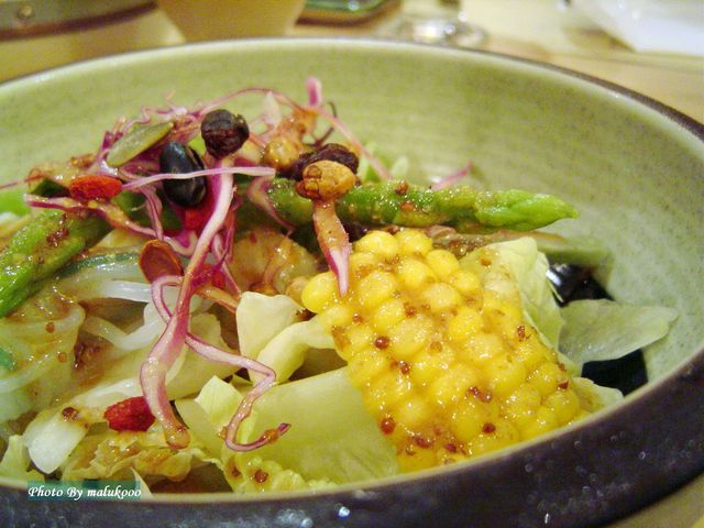 第二道送上的是沙拉,新鮮的蔬菜上灑了干果及核果,再淋上油醋醬,就是開胃爽口的前菜囉