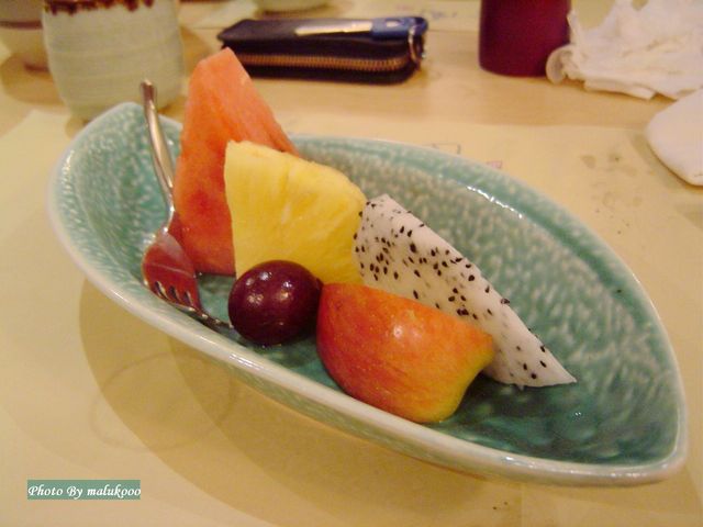 飯後水果。雖然量少,但種類多,新鮮好吃!!