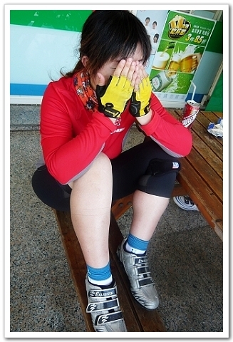 笨阿傑竟然把手套放在我車的貨架平台上沒跟我說,鳴槍開跑後我就一路狂騎,踩沒幾下手套就隨風飄落,後來只在路上撿到一隻,另外一隻已經不知道流浪到哪去了,看到的時候我都快笑翻了!!