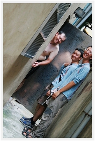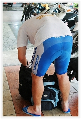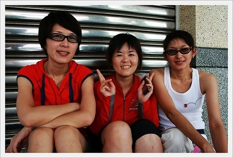 平時雖然大家都會聚在一起騎車,但一起出現在不熟悉的城市裡騎車這還是第一次,我到高雄的時候膝蓋早已疼痛難耐,連走路都是很大的問題,只能哀怨的坐在騎樓下休息,勉強擠點笑容來拍照。