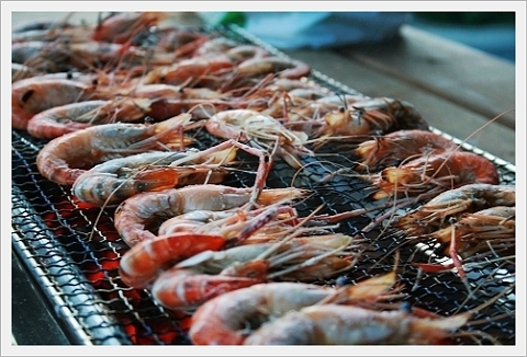 烤蝦表面上只灑上鹽去烤,可以吃到新鮮的原味,光看就很美味啦!!