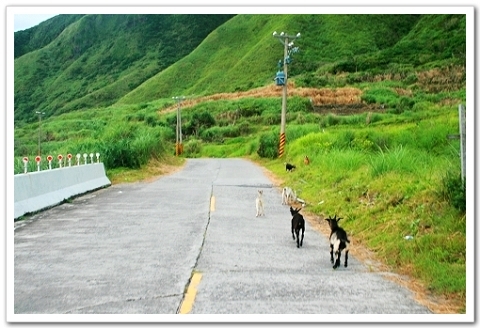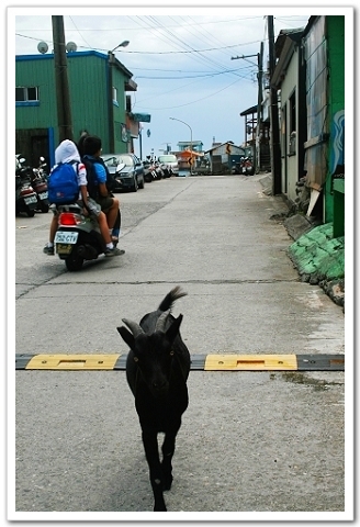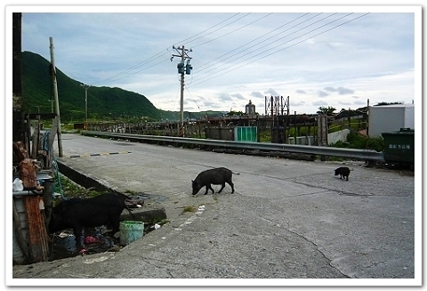滑到平地的時候,就看到豬們在路上逛大街,模樣看起來很可愛....哈