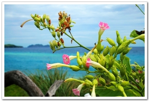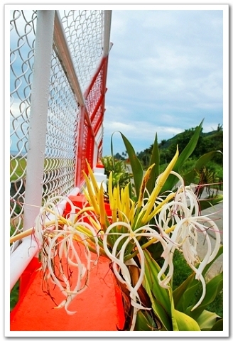 本來以為蘭嶼只有一大片水芋田,沒想到也有這麼鮮豔的花就這樣站放在海岸線的岸邊,跟後方的藍色大海對比之下,看起來感覺很心曠神怡阿!