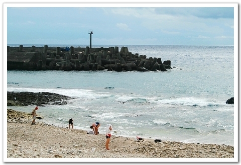 有幾尊青春的肉體在岸邊踏浪、撿貝殼
