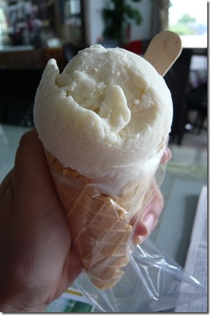 因為兩點多梁大哥還要去開會,我繼續在餐廳吹冷氣,看一些池上當地的導覽資訊,因為不好意思再讓梁大哥請,等他離開餐廳後,我才去櫃檯再點一隻「米冰淇淋」,沒想到櫃檯的先生還是沒跟我收錢,還笑笑的跟我說「梁先生不在,那就算梁太太招待的拉,不要客氣」~~~ (齁!真的很不好意思....)