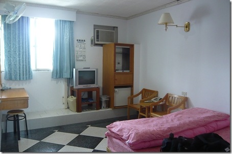 我住的這間房在三樓,床是一張很大的雙人床,電視冷氣都有,非常舒適哩!!