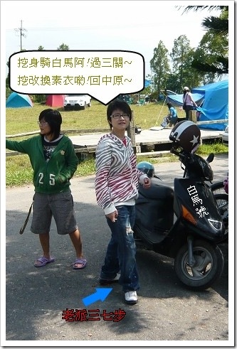 於是決定讓妮妮上陣代打,我很自然的就跨上摩托車偷懶了......哈哈哈
