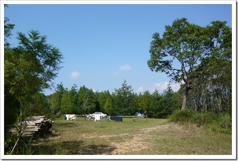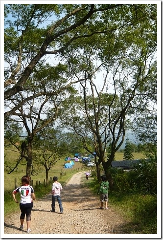 走上石子路之後,來到另外一片露營區,這裡不像前頭那麼熱鬧,就真的有種在山林中紮營的感覺,很安靜、很涼快!!