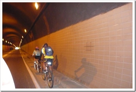 不過這個隧道做得很大,我們只要靠邊點騎其實是還蠻安全的!!