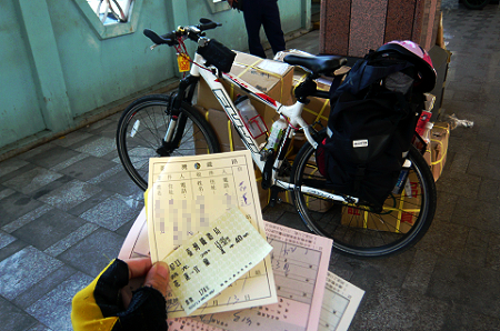 而又因為要人+單車同車到達的話,必須在開車時間前提早半個小時到達,並辦好託運手續,我總算是趕在開車前把託運手續辦好,原本火車站託運處的人還不讓我上車咧,我只好拼了命的含著眼淚懇求他們,這才順利過月台!!!!
