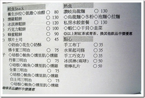 我本來也想點輕食,但這裡除了水餃之外,竟然也賣烏龍麵,一整個覺得屌翻了,就任性的在咖啡館點了烏龍麵!!