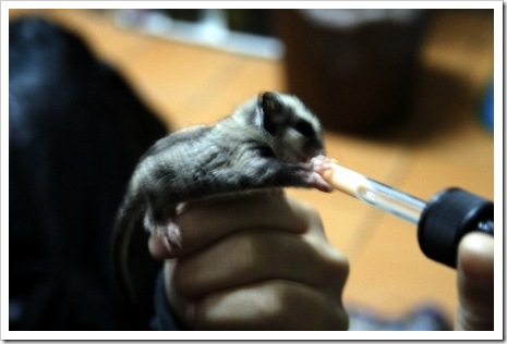 餵食時間到,他的食物是邪門也可以買得到的那種木瓜牛奶,他可愛喝的呢~