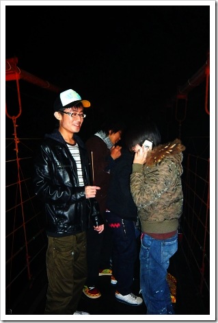 我這個人有走吊橋恐懼症,而且前面的路又黑壓壓的啥都看不到,走起來有種不確定感,超可怕的哩!!!