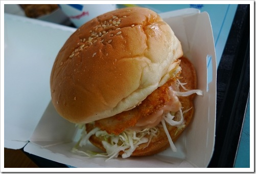 漢堡的部分有魚、豬、牛、雞四種肉可選,我看有人推薦魚香堡不錯,就直接點魚香堡囉!!