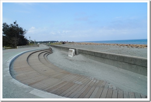 海灘沿線真的堆積了好多漂流木,雖然也有大型機具在清除,但數量這麼多的漂流木要清到完還真得花上好一段時間才行,不過我們在這慢慢晃、慢慢看的感覺是,其實還是小有遊客,很多當地居民也都在公園內聊天或運動,看起來雖稱不上熱鬧,但也沒有災後那種死氣沉沉的氣氛。