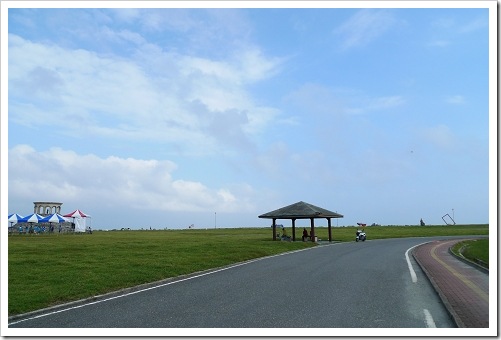 海濱公園有規劃單車道,在這裡騎單車的感覺真的很悠閒,而且沿路大部分都有遮蔭,偶而還有陣陣的涼風,是很適合悠閒騎的單車路線喔,在海濱公園入口處附近都有出租單車的店家,計費是以次數計算。我租的菜籃淑女車只要$100,沙沙租的變速登山車要$150。