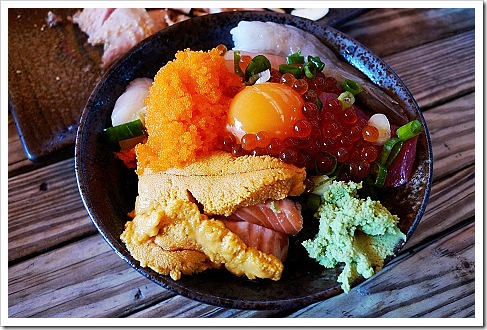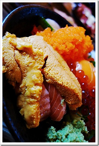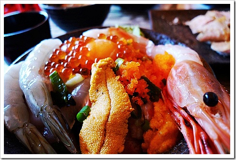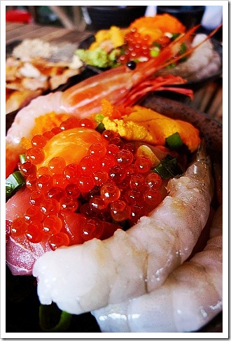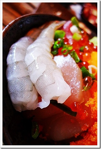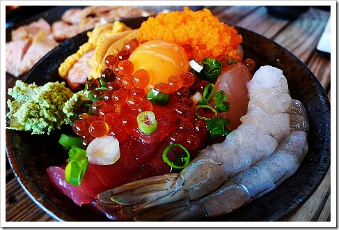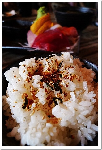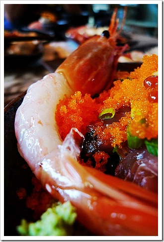 如果是點蓋飯的話,其實飯都已經淋上醬料,不用再另外淋醬油了,直接把生魚片佐一些wasabi配飯吃就很夠味囉!!!