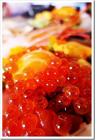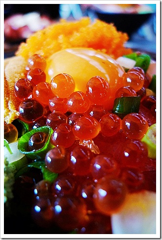 新鮮無比的鮭魚卵一咬下就在口中彈跳化開,滋味真的很不錯,能這樣一大口一大口的咬著鮭魚卵,真是奢侈的享受阿!!