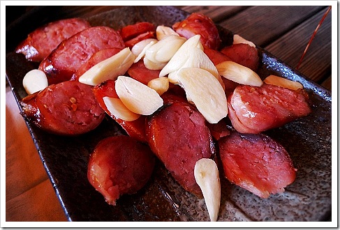 烤香腸也是一大盤,而且很貼心地都切片切好,也附上香腸的好朋友→蒜片!!