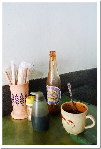 桌面上的調味料也是我每來吃麵必加的,最最以前只有黒醋、辣醬、辣粉,現在又多了辣醬油。