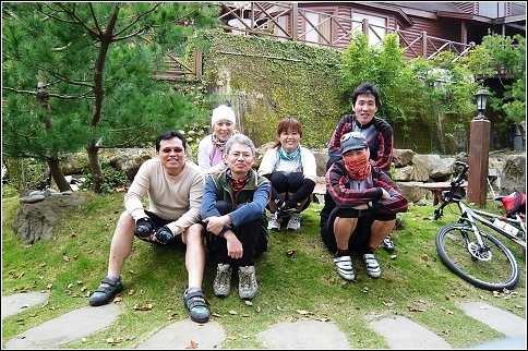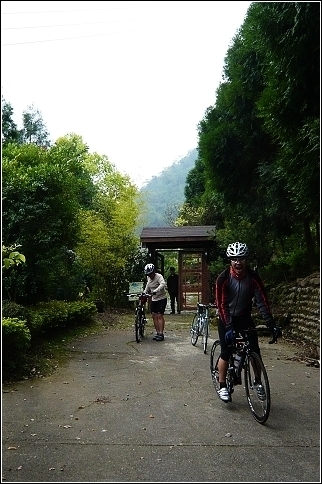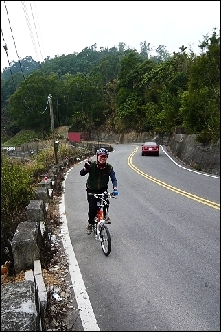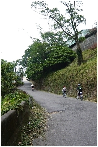 拍完那硬擠出笑容的合照之後,大家繼續努力往上騎,好斜阿.......